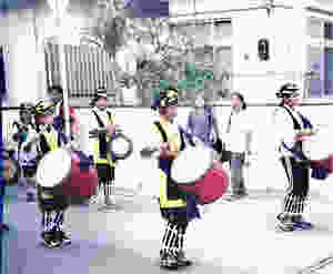 Eisa dancers use three types of drums, the odaiko (a large barrel drum), the shimedaiko (a medium-sized drum), and the paranku (a small hand-held drum).